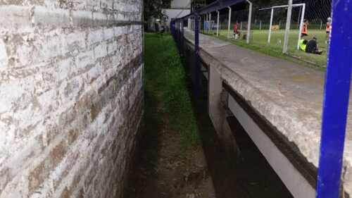 A esto se suma una cantina inconclusa, a medio camino de estar pronta, símbolo perfecto de obras que comienzan pero nunca terminan. El estadio también presenta falta de tejido perimetral detrás del talud del arco que da hacia la vía férrea, una situación que compromete seriamente la seguridad de jugadores y público. Como si fuera poco, una de las tribunas se encuentra inhabilitada, reduciendo la capacidad y afectando directamente la experiencia de quienes acompañan cada domingo.
