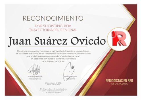 Con profundo dolor y respeto, Periodistas en Red Asociados comunica el fallecimiento del periodista Juan Suárez Oviedo, referente indiscutido del periodismo y del deporte del interior del Uruguay, ocurrido en la ciudad de Artigas a los 85 años de edad.
