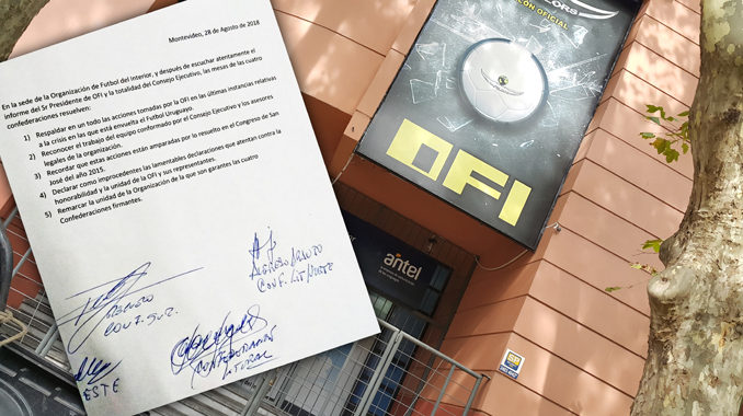 «Mientras algunas voces de las cuatro Confederaciones se alzaban en contra de que el presidente de OFI, Gustavo Bares, haya tomado en soledad la determinación de pedir ante Conmebol la intervención de FIFA en AUF, acompañando la solicitud de los jugadores de la selección y de los árbitros, ayer en la tarde apoyaron en la propia sede de OFI y ante el Ejecutivo todas las actuaciones.