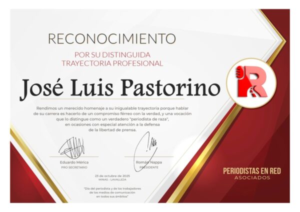 El homenaje llegó de la mano de Periodistas en Red Asociados, una organización que reúne profesionales de todo el país y que decidió poner en palabras lo que el interior ha sabido desde siempre: que Pastorino es un referente ético, un trabajador incansable y un símbolo vivo del periodismo hecho con corazón.