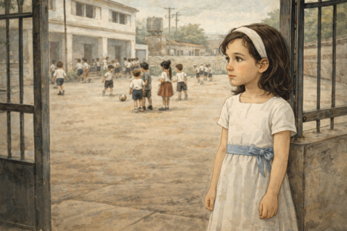 Estaba parada cerca del portón, lejos del centro del patio. No jugaba. No hablaba con nadie. Miraba hacia afuera de la escuela, hacia la calle Agraciada, como si el recreo no la incluyera. Como si ya hubiera cruzado un límite invisible.